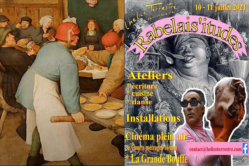 Installations vidéos/sonores/plastiques dans le village troglo et l’oeuvre de Jacques Warminski autour du film "La Grande Bouffe" et de Gargantua.