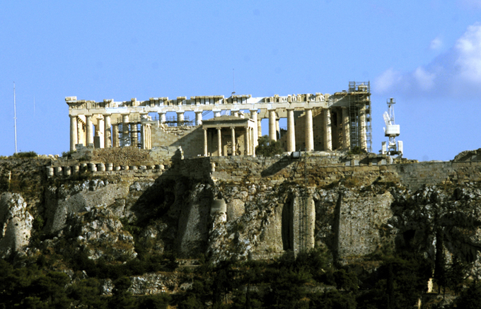Rassurez-vous, point de troglos. Il s'agissait de la restauration du Monument chorégique de Thrasylos, construit dans la petite grotte qui se trouve au dessus du Théatre de Dyonisos.