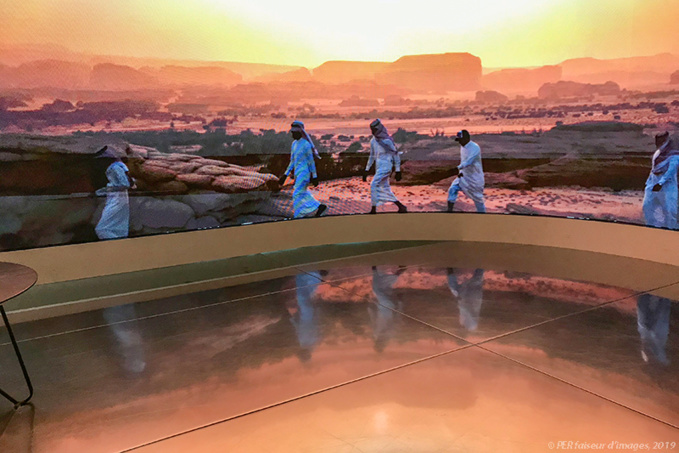 Le commissariat a été confié à Laïla Nehmé, épigraphiste renommée, chargée de recherches au CNRS et codirectrice de la mission archéologique de Madâin Sâleh, et à Abdulrahman Alsuhaibani, professeur d’archéologie à l’Université du roi Saoud de Riyâd. Images et films sont signées Yann Arthus-Bertrand. Nombre de maquettes interactives, dispositifs sonores et olfactifs sont à la disposition des visiteurs. Dans les deux premières salles, les grands moyens sont utilisés pour immerger le visiteur dans les étendues désertiques et l’oasis.