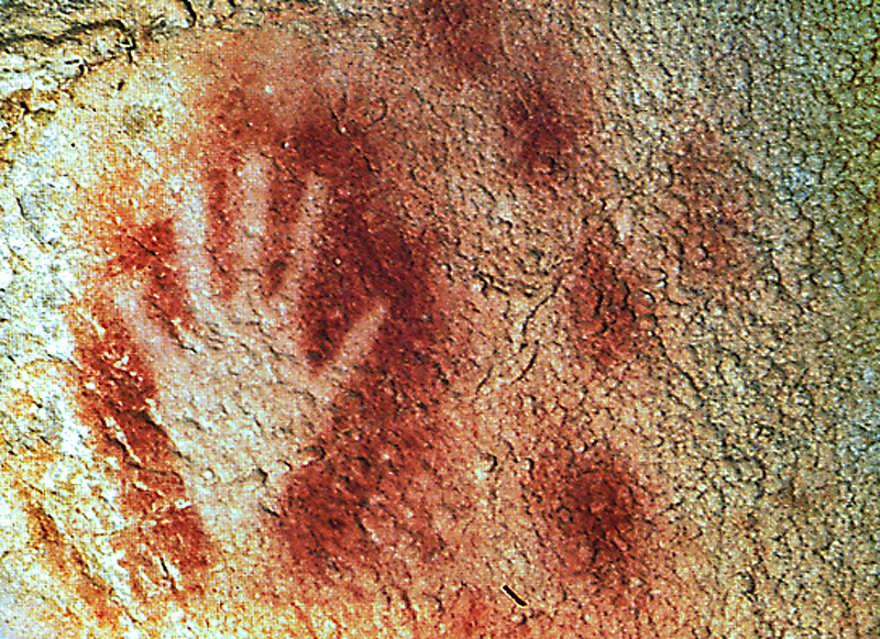 La représentation humaine est souvent segmentée et non complète. Motifs de dents, mains, sexes apparaissent sans lien avec un corps. Nous sommes là dans la représentation symbolique et non décorative. Le motif de la main est probablement le plus connu : les mains dites « positives » sont trempées directement dans la peinture : celles d’hommes, de femmes et d’enfants, parfois situées à des hauteurs qui impliquaient de hisser l’enfant vers le haut de la paroi… « Mains négatives », appliquées par un mode de pochoir. La couleur, noire ou rouge, définit alors le pourtour de la main. C’est le cas des représentations de la grotte de Pech Merle.