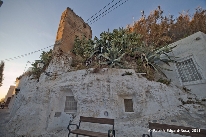 J’ai donc gravi au pas de course les rues escarpées pour traverser le quartier désert en cet hiver printanier. Mes efforts ont été récompensés lorsqu’aux confins reculés sur les flancs les plus élevés de la colline, j’ai pu découvrir les dernières caves ouvertes au regard. Là, point de route goudronnée ou pavée, mais des débuts de sentier de terre, serpentant entre les massifs de cactus, et quelques habitations plus ou moins abandonnées, pour l’instant dédaignées par les convoitises immobilières. La population gitane a été contrainte de s’exiler dans les quartiers les plus défavorisé au sud de la ville.