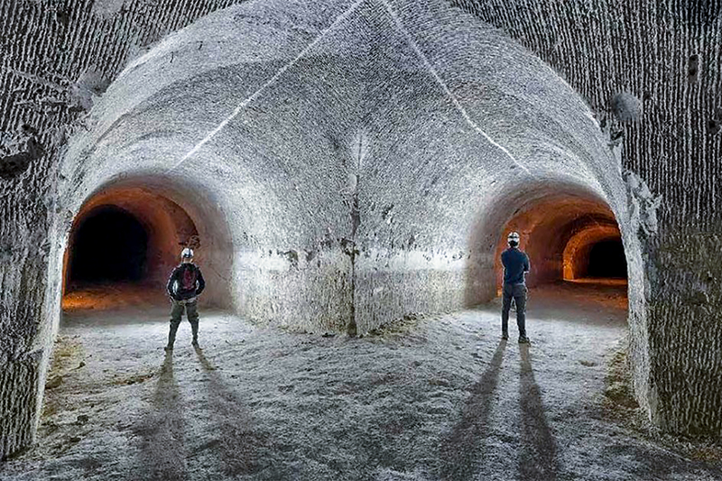 - soit un quadrillage de galeries très hautes (une dizaine de mètres) mais peu larges (environ 3 m), C'est ce qui caractérise les Carrières Arnaudet qui nous intéressent ici.