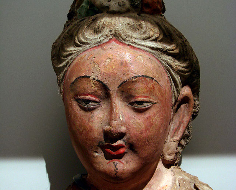 “Terre d’échanges et de culture, la Chine de l’Ouest s’est enrichie très tôt, dans l’histoire, de mouvements de pensée venus des contrées occidentales. Dès le IIe siècle avant notre ère, cette partie de la Sérinde fut l’objet d’intérêt grandissant marquée par les allées et venues des caravanes de chameaux chargés de denrées précieuses auxquelles se joignaient les moines pèlerins. Ainsi la nouvelle religion importée allait-elle être introduite puis développée en terre chinoise plusieurs siècles durant. Au fil du temps, cette partie éloignée de la Chine centrale prit de plus en plus d’importance ; des centres religieux, de traduction, des temples furent créés et de nombreuses grottes rupestres aménagées et ornées de peintures représentèrent les divers aspects de la vie et des idées des hommes de ces époques.