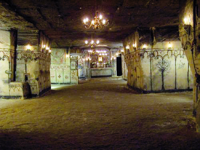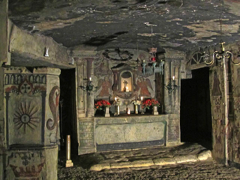 Il allume un brûleur à gaz, avec lequel il illumine les peintures murales dans la carrière. "C'est la cathédrale sous les églises clandestines", murmure-t-il. Dans la salle de l'église se trouvent un autel et la chaire. Il y a aussi deux anges et des images de Jésus et de Marie. Ils sont peints par l'ancien pasteur qui utilisait un mélange de protéines et des briques rouges. Dans une pièce derrière l'autel, il existe un confessionnal.