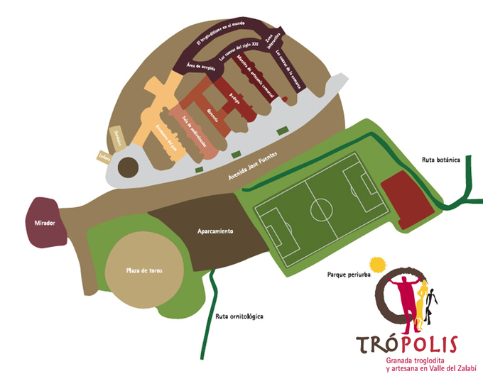 A l’extérieur du site, aux alentours immédiats, un grand stade sportif pourra être le théâtre de compétitions et les arènes traditionelles consacrées à la tauromachie. Le projet est financé par la province de Granada et la municipalité de Zalabi, aidées par les fonds européens.