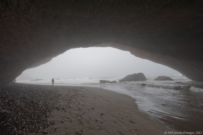 Pour les autres, amateurs de glisse en traînant les pieds dans le sable comme moi, je vous conseille de vous rendre à pied par la même plage aux deux arches qui dominent le site et qui font inévitablement penser à un Etretat buriné par le soleil. A marée basse vous pouvez entamer une longue balade et passer sous les arches rouges bien abritées du vent et des embruns.