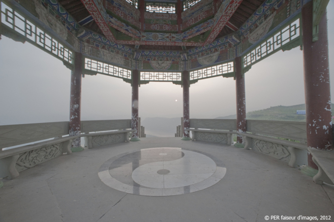C’est par le plus grand hasard qu’en remontant du Yang Tsé Kiang (Fleuve Bleu) que je rencontre une jeune institutrice qui m’emmenera à la découverte d’un de ces villages qui peuple la Chine continentale au bord du Huang He : Fuyihe, petit cul de sac adossé au grand fleuve. J’y rencontre celui qui deviendra un frère, un père, maire du village, Guo ru bin. Point d’électricité, ni eau courante à l’époque, le progrès semble s’être arrété dix kilomètres plus haut au village intermédiaire de Xiaocheng qui surplombe les méandres du Fleuve. Une pagode a été érigée à ce point prècis ou la légende affirme que la symbolique du Ying et du Yang seait née là.