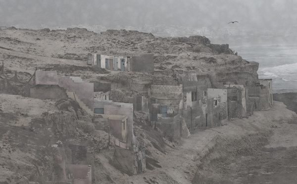 Nous sommes dans le sud marocain, au bord de l'océan. Au-delà du village de Bossoun, au bout de plusieurs kilomètres de piste dans le sable. Un hameau de grottes de pêcheurs face au grand bleu....