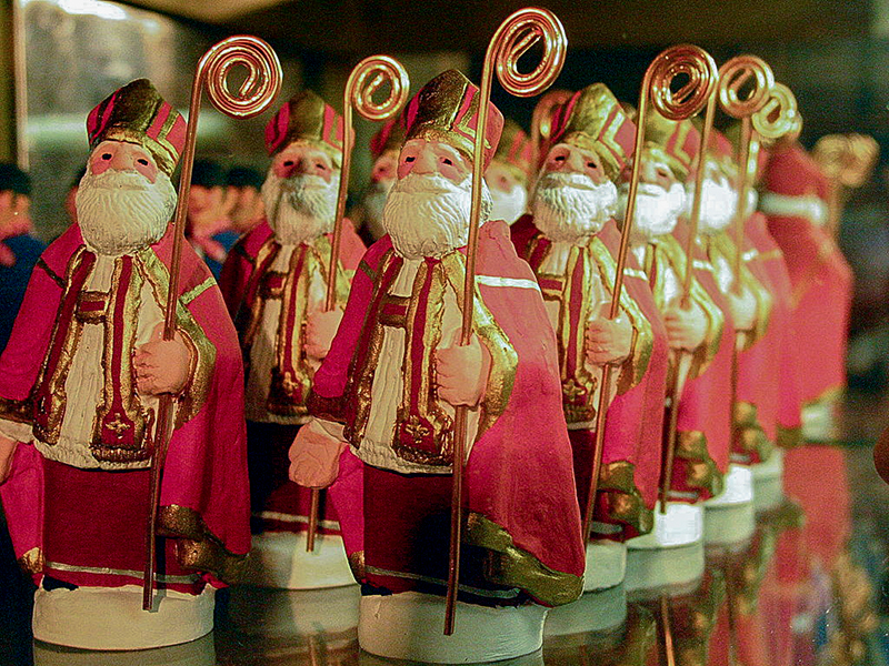 La légende naîle t : " De là, son culte s’est répandu dans toute l’Europe. Sa figure bonhomme a ensuite traversé l’Atlantique au XVIIe avec les immigrés hollandais et s’est transformée en notre Père Noël à houppelande, promu par les publicités Coca-Cola."