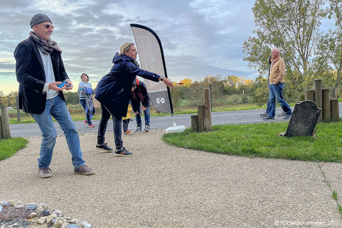 Laétitia Saint Paul n'a pas manqué à l'appel, toujours à l'affut des réalités saumuroises, s'initiant au "Corn Hole" en compagnie d'Yvan.