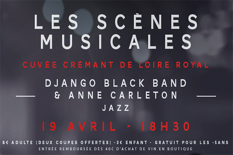 Le groupe de jazz Django Black Band mêle le jazz manouche au swing jazz américain, à la bossa, funk et airs connus de la chanson française dans un répertoire plein de surprises ! La vivacité et l’entrain des morceaux bop côtoient le swing profond du jazz manouche. Les musiciens du groupe utilisent leurs instruments avec les techniques traditionnelles du jazz manouche en s’imprégnant d’une approche plus moderne développée dans le jazz américain des années 60. La talentueuse Anne Carleton accompagnera au chant le trio en interprétant les plus beaux standards de jazz américains et les classiques français, des années 20 à nos jours. À l'occasion, nous vous proposons de déguster notre emblématique cuvée Crémant de Loire Royal.