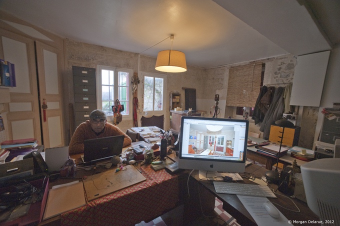 Alors je donne à Morgan l’occasion de travailler des panoramiques… le premier, c’est l’Annapurna à gravir en raquettes ! Quinze heures durant, Morgan ferraille avec les calques, se mélange les pinceaux en calorimétrie… De temps en temps, il me questionne. Je lui réponds avec un grand sourire « démerde-toi! ». Le deuxiéme pano est réalisé dans un temps plus décent, le troisième presque avalé en un clin d’œil. Ensuite, pris par cette passion vertigineuse, Morgan me propose de réaliser une pano à 360° du bureau des Trogs. Pourquoi pas ? Prises de vues comprises, le tout est exécuté en…trois heures ! Tu vois Morgan, quand tu veux, tu peux !