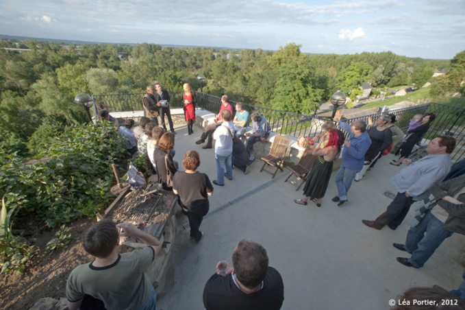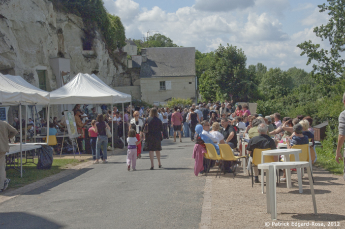 Samedi dernier 17h. La trogsmobile a du mal à trouver sa place sur un parking presque saturé mais finalement nous parvenons à atteindre le magnifique panorama qui se déroule de la terrasse de Gratien Meyer. Point de gouttes de pluie, mais des perles de Jazz et nos bulles locales, le tout s’égrène au fil d’un après-midi presque automnale. J’ai plus envie de me couler à une table en savourant le temps qui passe que de saisir l’instant, mais pas une place assise. Denis, l’un des responsables de la Maison me grimace en toute fausse modestie, que le mauvais temps a empêché à la manifestation d’atteindre des records. Je n’en crois rien. Jazz bulles est devenu incontournable, à Saumur.