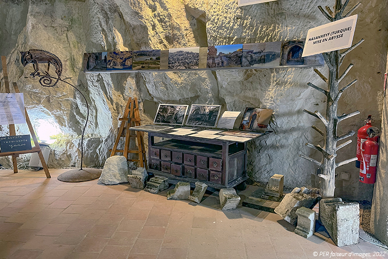 Ce premier thème est évoqué dès l'entrée dans la salle principale. Certains sites ont disparu à cause de la volonté humaine (Haysankef en Turquie) : le président Erdogan a immergé l'ancienne capitale turque, pour les besoins d'un barrage hydro-électrique... D'autres sont en situation délicate, fragilisés par la pression du temps : la Caverne sculptée de Dénezé-sous-Doué ou encore l'Hélice terrestre. à Saint-Georges des-Sept-Voies. Ces deux derniers sites nécessitent une volonté politique soucieuse de la préservation du patrimoine et d’importants financements destinés à la restauration.
