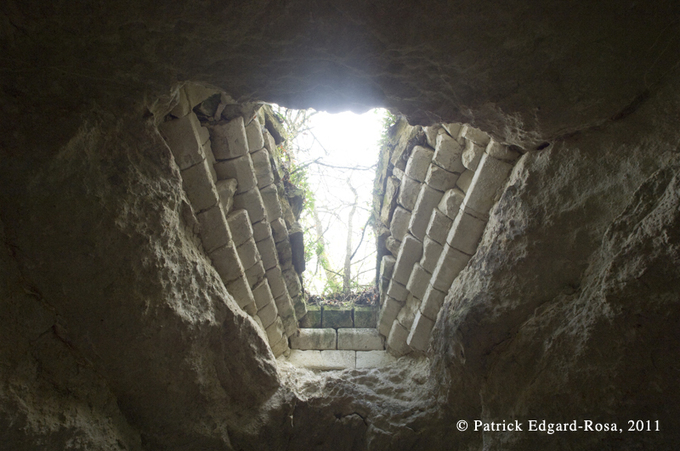 A trois ou quatre mètres au-dessus de moi tout un pan de la paroi du puits n’existe plus, d’où l’absence d’encoches… Et je comprends aussitôt que je suis piégé dans ce réduit : l’échelle est tombée avec moi et de toute évidence je n’ai dans ma situation aucune possibilité de remonter à la seule force des bras et jambes car il ne se trouve aucun point d’accroche avant plusieurs mètres au-dessus de ma tête. En me contorsionnant un peu je sors à tout hasard mon téléphone portable de ma poche, espérant peut-être un miracle. Mais bien évidemment l’appareil ne détecte aucun réseau.