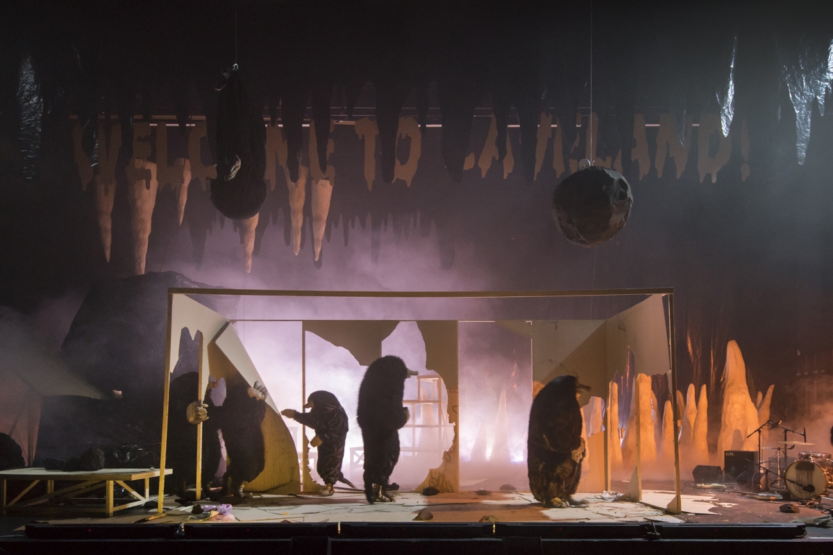 "Welcome to Caveland! est une manifestation artistique qui tire son inspiration des sous-sols et des cavernes, des lieux cachés et clandestins, des territoires underground et alternatifs, proches de la terre et de la matière, mais aussi propices aux visions oniriques. Pendant une vingtaine de jours, les différents espaces de Nanterre-Amandiers vivront au rythme souterrain d’un terrier dont les galeries et tunnels englobent tous les arts : parade, lancée par l’énergie sourde de taupes costumées, qui déambuleront à travers le parc de Nanterre ; théâtre avec La Nuit des taupes de Philippe Quesne et sa version jeune public ; théâtre très jeune public avec la création de Cécile Fraysse, L’Île aux vers de terre ; la création inclassable de l’artiste et cinéaste Apichatpong Weerasethakul, Fever Room, qui invite les spectateurs dans une expérience initiatique, brouillant avec virtuosité les frontières entre cinéma, théâtre et installation ; un cycle de programmation cinéma autour de la thématique des sous-sols ; conférence-spectacle avec Inside de Bruno Latour, seul sur le Grand Plateau ; académie de thérémin proposée par Dorit Chrysler, qui invite les enfants à pratiquer cet instrument mystérieux ; documentaire avec la radio collaborative et participative de Nanterre, Radio Agora, transformée pour l’occasion en Radio Caveland, qui prendra ses quartiers dans le hall du théâtre et partira notamment à la rencontre de ces travailleurs des sous-sols – égoutiers ou câbleurs des profondeurs. Dans les ateliers du théâtre, les visiteurs pourront découvrir une grande caverne gonflable en plastique noir, dans laquelle auront lieu concerts, conférences et performances, dont celle de l’artiste et chorégraphe Mette Ingvartsen, Speculations. Ce sont des croisements heureux et des temps de réflexion et d’échanges, que propose cette vaste célébration des sous-sols – comme une invitation à façonner et inventer d’autres espaces, d’autres manières de se rencontrer et de fabriquer de la pensée."