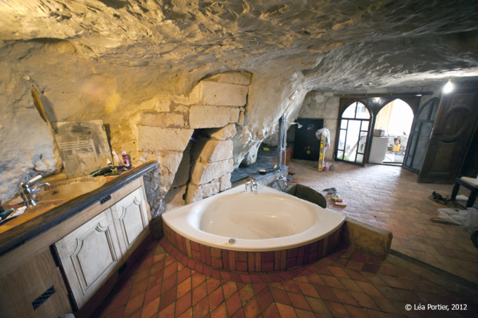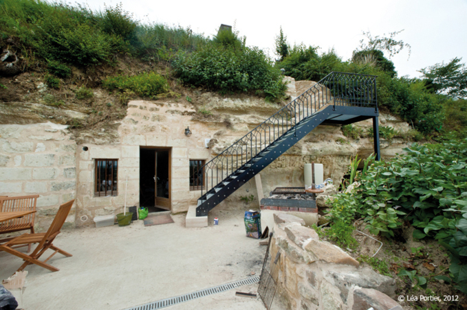 Le site troglodytique daté du XIème siècle situé sur le coteau de Parnay a été réhabilité et réaménagé pour accueillir 6 à 8 personnes dans un décor exceptionnel. Comment réaliser des travaux dans le plus grand respect de l’identité médiévale du site? C’est le pari relevé par ces deux amoureux du patrimoine que sont Patrick Pouchin et Isabelle Joly. La conservation du passé constitua la toile de fond du gigantesque chantier. Ainsi les matériaux utilisés sont d’origine locale et auraient pu être choisis par les moines eux-mêmes : tuffeau, terre cuite, bois, ardoise, et fer forgé. Il était donc impensable de garnir les parois de PVC ou de métal.