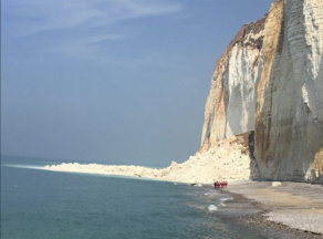 Un éboulement de falaise, sur une centaine de mètres, s'est produit en Normandie sur une plage de la Côte d'Albâtre, au nord de Fécamp, le 25 août dernier, sans faire de victimes. Près de 50.000 m3 de roches se sont écroulées sur une plage de la commune de Saint Martin des Bruneaux entre Fécamp et Saint-Valéry-en-Caux, au lieu-dit "Petites dalles".