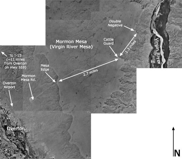 Double Negative se situe sur le versant est de Mormon Mesa, au nord-ouest d'Overton, sur le territoire de la ville de Moapa Valley dans le Nevada.