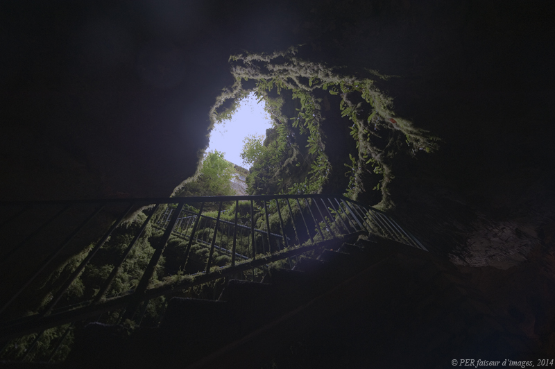 Rhinolophes, murins et autre oreillards sont prêts à vous raconter leur mode de vie, le long du parcours des trois galeries desservies par le plus large des trois avens. Nous sommes à 25 mètres sous terre, au royaume de Dracula. Âmes sensibles, s’abstenir…