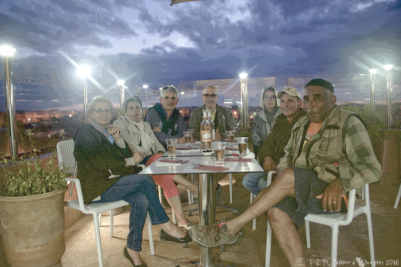 Les Trogs avaient tout préparé, sur place. D’abord une balade sur le « spot » de Leghzira qui fait étrangement penser à notre Etretat national : trois bonnes heures d’embruns atlantiques avec … un bon resto à la clef !