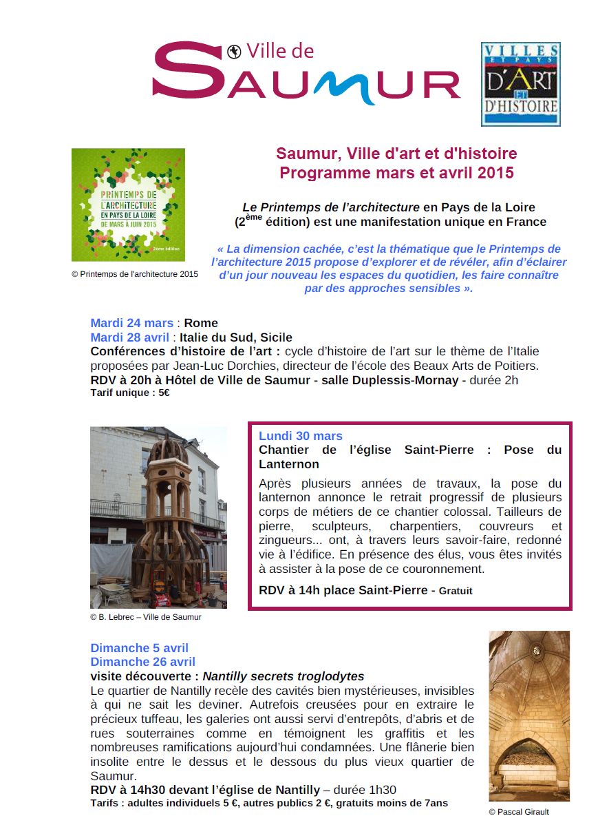 Ci joint, le programme mars-avril de Saumur, Ville d’Art et d’histoire
