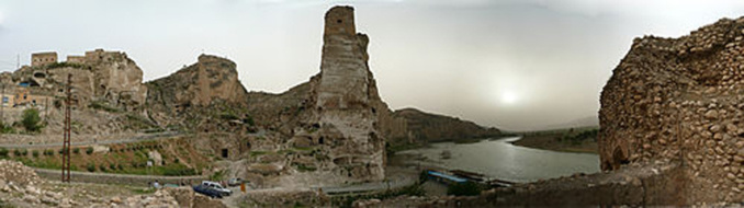 La citadelle construite par les Ayyoubides au XIIIe siècle et remaniée par de nombreux chefs kurdes au cours des siècles gît en ruines au sommet d’une falaise de calcaire monumentale qui se dresse verticalement au-dessus du Tigre. La ville ancienne de Hasankeyf, construite à côté de la vieille mosquée de la forteresse, est aussi en ruines : dans les années 1970, ses habitants ont été forcés par le gouvernement turc d’abandonner leurs maisons centenaires, souvent creusées dans la roche, et de venir s’installer plus bas, dans la vallée, près du vieux pont.