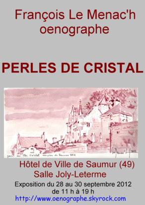 Le premier week-end du mois sera consacré à l'exposition PERLES DE CRISTAL qui se tiendra salle Joly – Leterme, à l’Hôtel de ville de Saumur, les 5, 6 et 7 octobre de 11h à 19h.