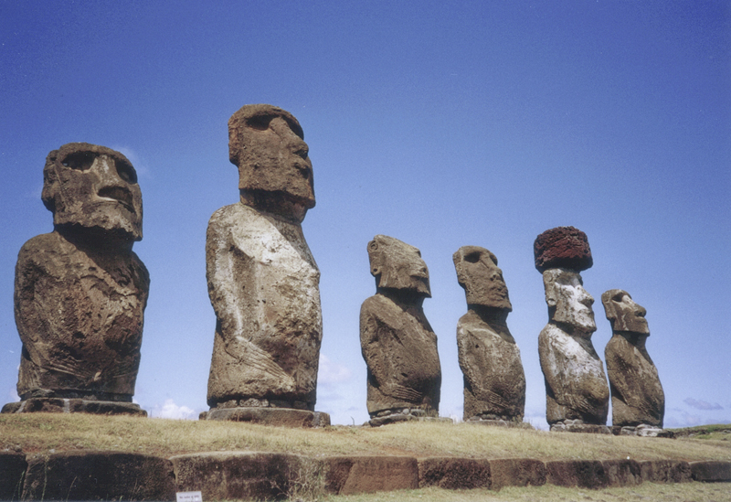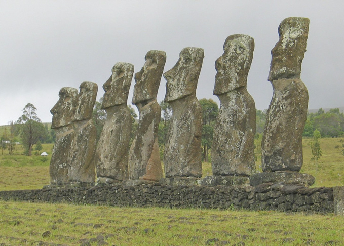 En effet, les fouilles ont mis à jour le torse de statues de 7m de haut. Ces statues possédaient une fonction cérémonielle : leur dos est recouvert de pétroglyphes (gravures creusées dans la pierre) mystérieux. Certains représentent des vaka (pirogue), rattachés soit à l’artiste sculpteur, soit au groupe auquel appartient la statue. Certaines des statues excavées sont masculines, au torse musclé, et ont les bras croisés comme certaines divinités égyptiennes. Les femmes ont souvent le ventre gonflé avec les mains ramenées de part et d’autre du nombril.