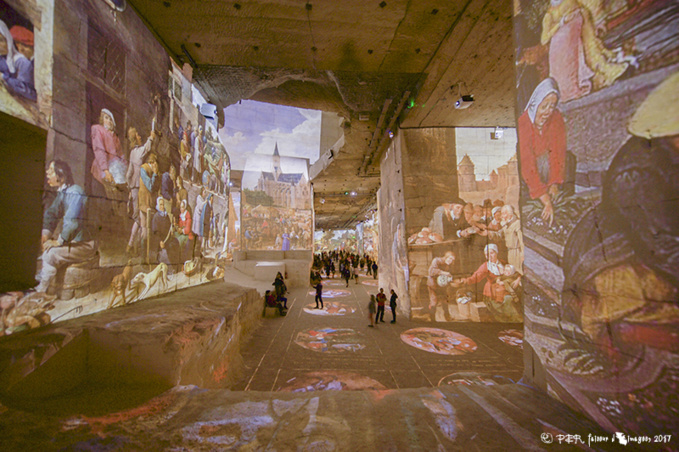 Les Carrières de Lumières ou Carrières des Bringasses et Grands Fronts sont situées aux Baux de Provence dans le département des Bouches-du-Rhône. Leur histoire est indissociable de la vieille cité. Dès l’origine, on extrait la pierre calcaire des carrières aux alentours des Baux où plusieurs vestiges attestent de cette exploitation. Les populations utilisaient le silex, puis le fer et le bronze. L’habitat se développe dans les abris creusés ou bâtis de pierre sèche. Lors de la seconde partie du premier âge du Fer (VIIe – VIe siècles av. J.-C.), la population se sédentarise et se met à construire en dur. Plusieurs traces subsistent aux alentours du château, stèles, ateliers… Au fil des années, ces carrières sont creusées pour en extraire le calcaire blanc utilisé pour la construction du Château et de la Cité des Baux. Il s’agit d’une roche sédimentaire résultant de l’agrégation de carbonate de calcium sur un sable calcaire, dans laquelle on trouve quantité de fossiles marins qui permettent de dater sa formation au miocène Burdigalien (-20 à - 15 millions d’années). La forteresse fut construite du XIe au XIIIe siècle sur une vaste étendue de sept hectares. L’extraction était réalisée à ciel ouvert, mais s’est épuisée relativement rapidement. Quand s’amorce le déclin de la cité, les carrières subissent la même évolution et tombent dans l’oubli. A la fin du XIXème siècle, la découverte et l'exploitation de la « bauxite » ravivent l’intérêt pour la cité dont le château n’est que ruines. Mais en 1935, la concurrence économique des matériaux modernes (béton et béton armé) conduit à leur fermeture.