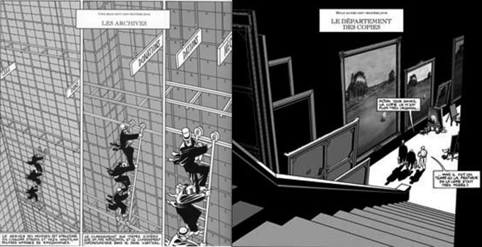Le périple nous emmène jusqu’aux « bas fonds » du Louvre. La BD se pare d’illustrations en noir et blanc pour nous faire visiter cette étonnante forteresse et nous inviter à une réflexion sur l’Art, et les difficultés de la conservation du patrimoine et celles des missions muséales.