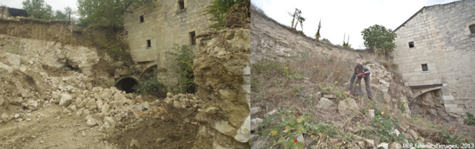 Il a fallu faire procéder à l’effondrement de quelques caves et aplanir le sol. Le talus a été sécurisé et transformé par un paysagiste.