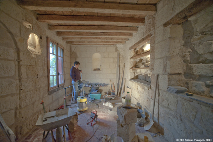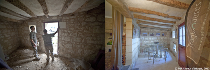 Trop exigu pour les réunions de travail des Trogs, le mur qui jouxtait une soue à cochon désaffectée a permis de tirer parti du nouvel espace