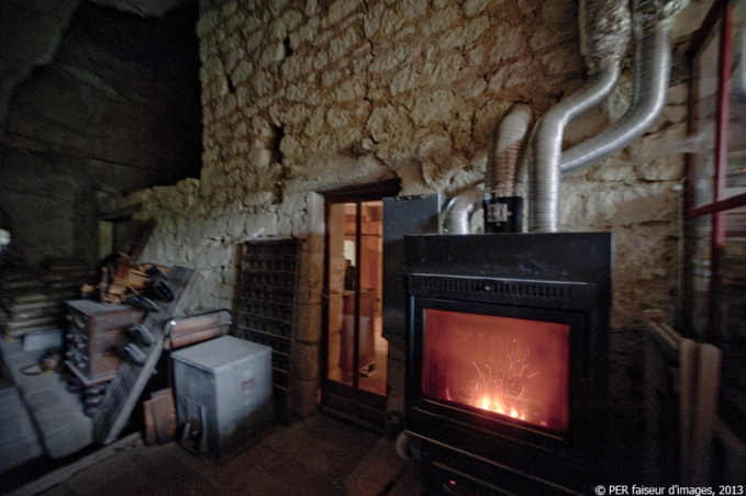 Nous avons opté pour installer un chauffage à granules qui répartit une chaleur douce à tous les étages et dans la salle de bain « troglo ».