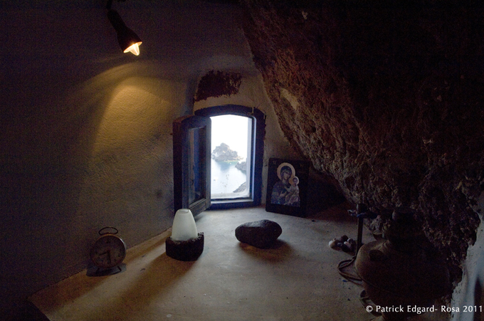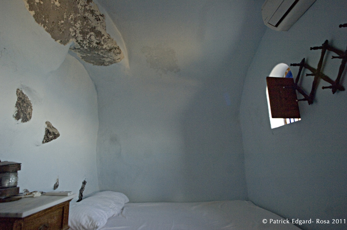 Rena a pris le parti de conférer au lieu un certain isolement : nous ne sommes qu’à deux doigt d’une solitude quasi monacale. Les « scaftas » (caves habitées) dominent à la pointe du village, au bout de la frange habitée. Baissez les yeux, la nature vierge descend abruptement vers la mer. Rena voulait rester maître du dessus : elle a acheté les maisons situées au-dessus de ses actuels gîtes et de sa propre habitation : « je ne voulais pas d’autres propriétaires au dessus de ma tête ». Du coup, elle entreprend actuellement un second plan de réhabilitation. Six habitations au total, dont la sienne, deux ouvertes à la location, et trois en chantier, en fin de restauration destinées là aussi aux touristes de passage. Du tourisme mais pas à n’importe quel prix…