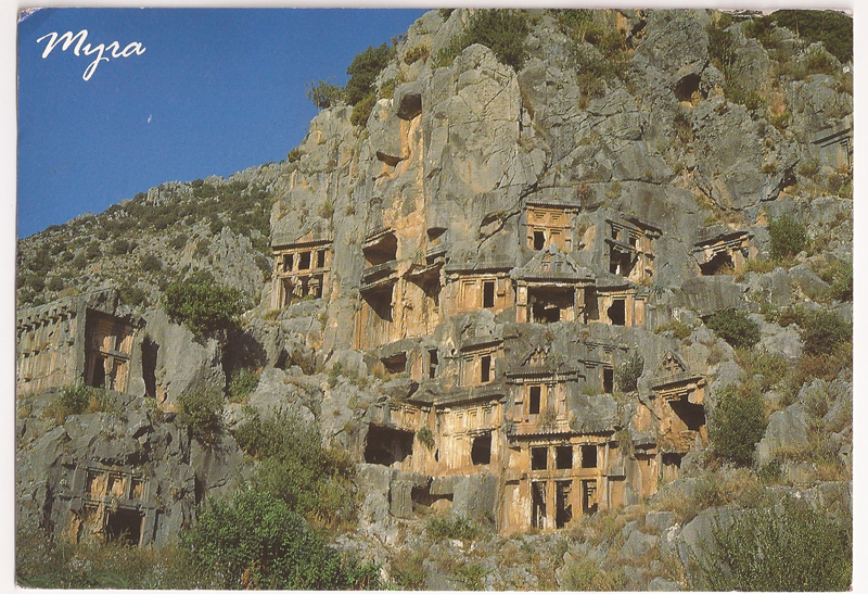 Révélée par Strabon (géographe et grammairien du début de l’ère chrétienne), la cité est une ville antique de Lycie (5ème siècle av. J. –C), au sud-ouest de l’Anatolie, sur le fleuve Myros. Réputée pour le commerce du murex et de la pourpre (La couleur pourpre était probablement tirée du pourpre, un mollusque gastéropode à coquille ovale ou oblongue, généralement du genre Murex).
