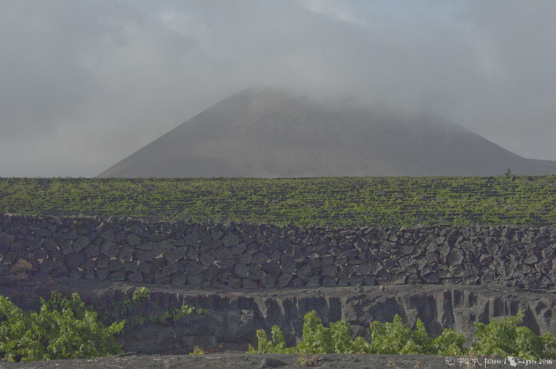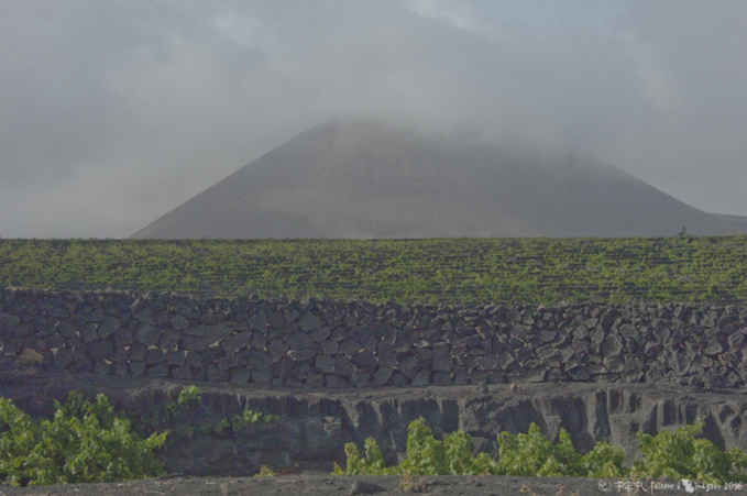 Devant la maison, une vaste esplanade surélevée avec des enchères creusées en contrebas ressemble à une aire de battage ou un pressoir à raisins. Ce sont des pièges à eau, qui mènent les rares pluies vers une citerne souterraine. Encore une preuve de l’ingéniosité humaine pour s’adapter à son environnement. De même, dans les vignes qui s’étalent aux alentours dans les champs de sable volcanique, chaque cèpe est planté au fond d’un trou conique tel un véritable entonnoir, et protégé par un muret de pierres volcaniques, destiné à le protéger du vent et à recueillir la rosée du matin. En effet, le sable volcanique joue le rôle de capteur d’humidité et de régulateur thermique. Comme à Santorin, la terre volcanique donne naissance à d’excellents vins, rouges ou blancs. Certains cépages très anciens datent d’avant les ravages du phyloxéra. Certaines bodegas (caves à vin) remontent au 18ème siècle. Nous vous conseillons le blanc de la Bodega El Griffo