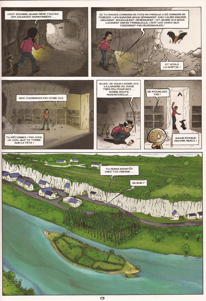 Ondine, rentrée par “accident “ dans un monde qu’elle ne connaissait pas, n’éprouve aucune crainte et poursuit ses déambulations en compagnie d’un lapin, d’une chauve souris et d’un champignon...