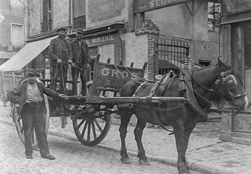 Les livraisons s’effectuaient à domicile, grâce aux voitures à cheval. C’était le Paris d’un autre temps : les paniers tout prêts étaient extraits de la glacière, chargés dans la voiture et livrés au consommateur. Des vendeurs de pain de glace et de « carafes » passaient ainsi chaque matin, comme le laitier.