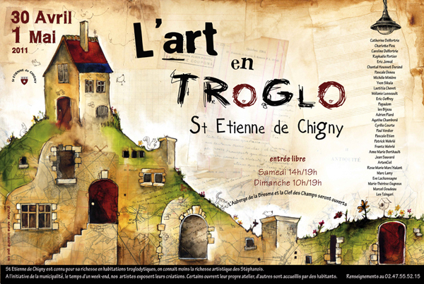 L’art en troglos, c’est aussi là bas… riche en habitations troglodytiques habitées, Saint-Estienne de Chigny (37) est moins connue pour sa richesse artistique. A l’initiative de la municipalité, le temps d’un week-end, une trentaine d’artistes vont exposer leurs créations. Certains ouvriront leurs ateliers, d’autres seront accueillis par les habitants.