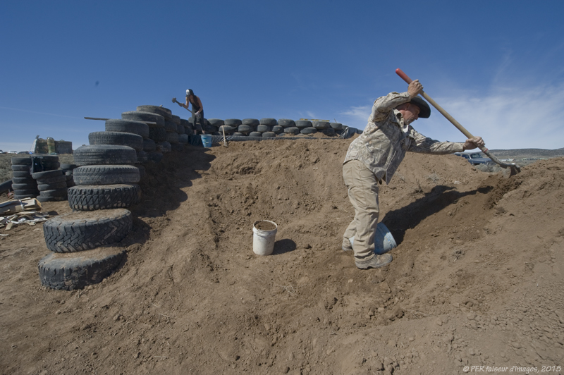 Comment traiter et recycler nos déchets? La réponse nous est donnée par Michael Reynolds. Nous avons pu assister à deux chantiers de construction de earthships, où les matériaux essentiels se nomment bouteilles de verre usagées, canettes de bières vides et pneus usés. Le concept est innovant mais fait école…
