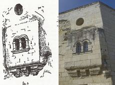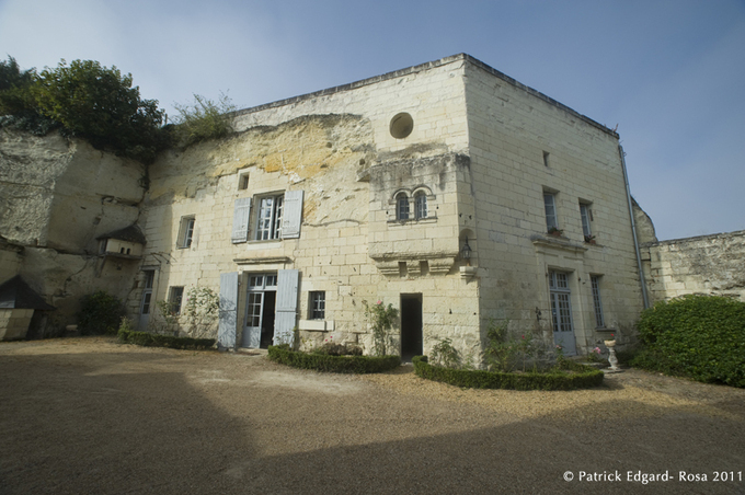 Extrait de LES TROGLODYTES EN ANJOU à travers les âges / Habitat seigneurial, bourgeois, ecclésiastique.(P.85) Les pièces d’habitation de cet ancien manoir sont creusées dans le tuffeau (village de Parnay), en lisière de la route. …Une salle du rez-de-chaussée a ses parois entièrement recouvertes de vieilles boiseries ; une antique cheminée est située dans une cuisine attenante. Un escalier à vis en pierres de tuffeau appareillées, conduit aux chambres du premier étage et au grenier, où il se termine en coupole. La façade, appareillée, est flanquée d’une échauguette de plan rectangulaire, au centre de laquelle s’ouvrent deux petites fenêtres jumelées à sommet arrondi. Des meurtrières sont taillées dans les trois faces.