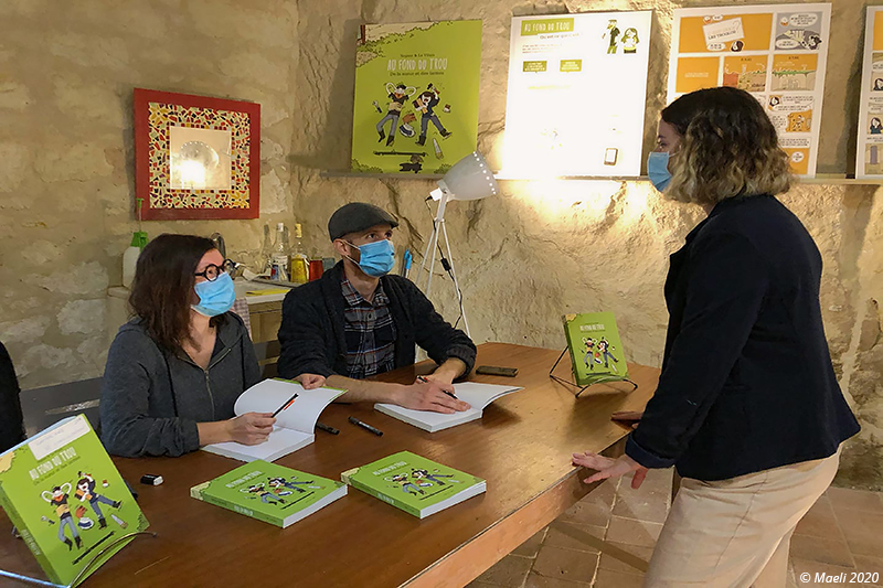 Mélanie et Florent, auteurs de "Au fond du trou" ont connu un franc succès. L'exposition de certaines planches seront visibles à la Troglothèque jusqu'au printemps. Vous y trouverez aussi leur ouvrage.