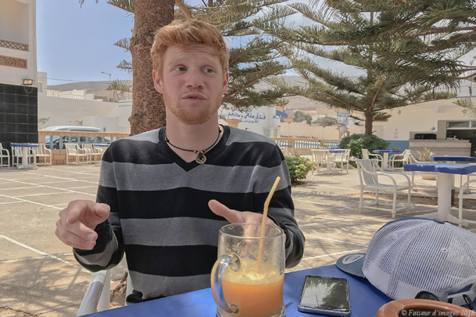 Pisteur-secouriste de par son métier (il s’orientait vers les métiers de l’électricité), Antoine vit en France. L’été la neige ayant fondu, il gère l’état des pistes de vélos et de descente. Bref, une vie au grand air. Manquait l’appel des grands espaces et du large : la mer et le parapente. Les « spots » marocains commençant à être réputés, il se parachute avec des potes à Aglou-plage et tombe sous le charme de ces habitations nichées dans la falaise.