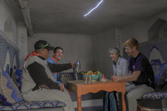 Dorénavant, le voilà mettant la main à la pâte (enduits de chaux recommandés), se grattant le crâne pour résoudre les soucis quotidiens : humidité marine, vents de sable, électricité (il est au courant). Peu à peu, il s’informe de l’environnement, des us et coutumes, des recettes de cuisine (plat à Tajine, première cuisson…). En deux mots, il s’est pris au jeu…