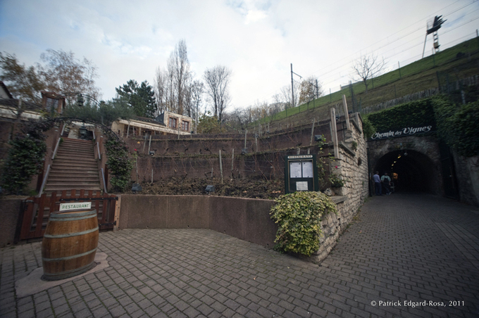 Nous quittons les Crayères des Montquartiers et redescendons la rue de Verdun : une galerie en dissimule une autre. Et du coup, nous tombons dans une affaire de famille, « le Chemin des Vignes ». La galerie obéit au même principe économique : stockage des vins, réceptif et évènementiel.