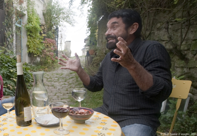 De passage sur notre territoire, il rentre de Turquie, de Grèce (encore des troglos!) et décide de faire une halte dans l'hébergement semi troglo de la Comtesse de Montsabert, initiatrice du "goût thé en l'ibr'air". C'est à cette occasion que j'ai pu enfin rencontrer ce Québecquois aux origines amérindiennes qui, disposant de quelques hectares paternels a décidé il y a des années de créer en pleine nature boisée bon nombre d'écogîtes, dont deux d'inspiration troglo.