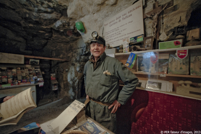Qu’il soit en complet cravate en partance à la gare de Saumur, à bord de son pick-up, déboulant des entrailles de la terre, ou en tenue de mineur, soldat d’un autre temps, armé de son seul coupe-champignon, l’homme reste toujours le même.