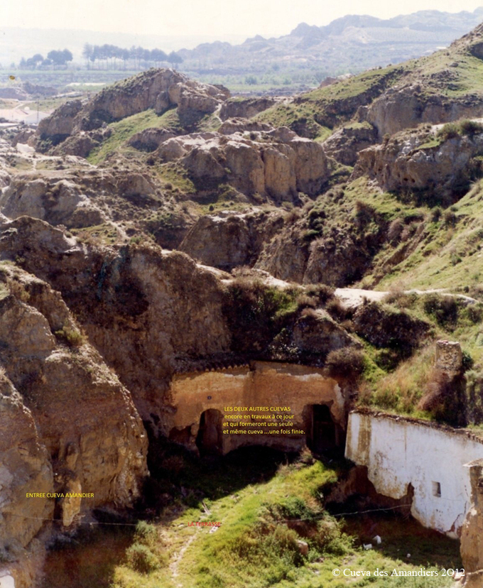 Au moment de rendre les clés au loueur, nous lui demandons simplement s’il en connaît à vendre. Nous prenons rendez-vous le lendemain matin et il nous en fait visiter 3 ou 4 (seul inconvénient, nous étions partis sans appareil photo!). Mais en visitant ce qui est devenu “cueva amandier”, dans le salon actuel, je dis à Fabrice “c’est ici que je me sens bien” (je précise que je suis architecte de formation) et que les dimensions de cette pièce et son aspect chaleureux m’interpellent. Souvent creusées par les Maures chassés de Granada et réfugiés dans les montagnes de Guadix avant que les Rois Catholiques ne reprennent définitivement toute la contrée, je me prends à rêver et à me dire que ces mathématiciens étaient vraiment forts pour trouver les justes proportions de l’Homme.