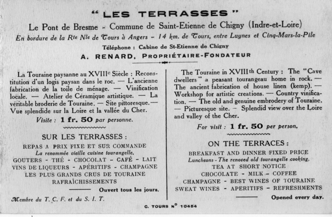 Sur une carte commerciale bilingue français et anglais! de l’époque, il est fait mention de repas à prix fixe et sur commande, de la possibilité de « goûters, champagne et raffraîchissements, ouverts tous les jours ». Une autre carte commerciale présente deux élégantes dames profitant sans doute des rayons du soleil, avant que la nuit n’envahisse le site.